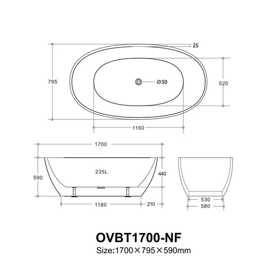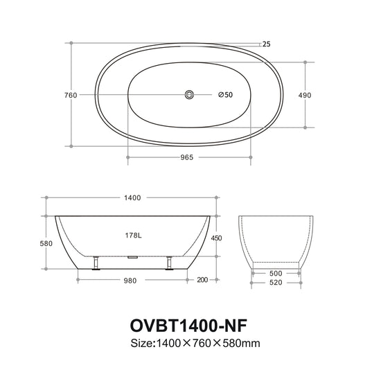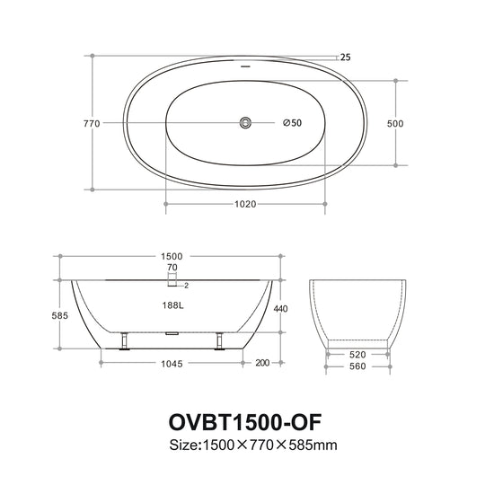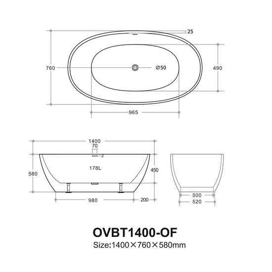 Ovy Acrylic Freestanding Bathtub 1400/1500/1700 OVY1400/1500/1700-NF/OF