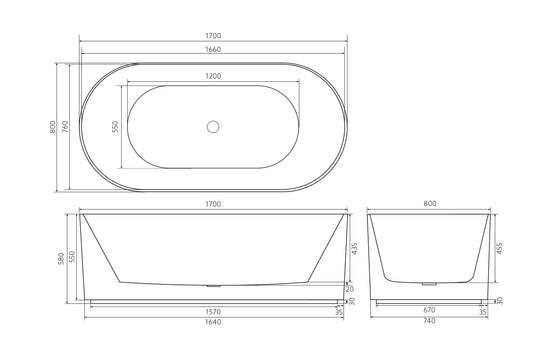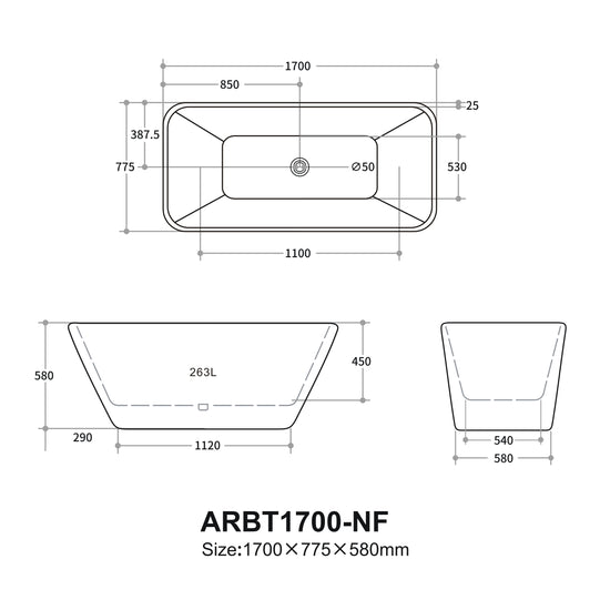 Rossa Freestanding Bathtub 1500/1700 RBAT1500-NF/RBAT1700-NF