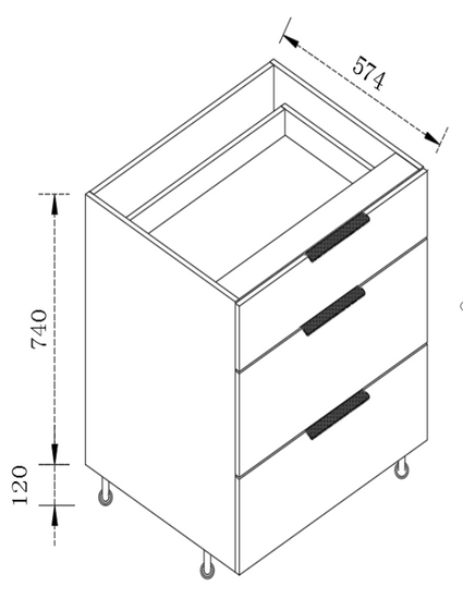 Kitchen Cabinet 3 Drawer Cupboard 400/450/500/550/600/700mm 3DB-400/450/500/550/600/650/700-BOX