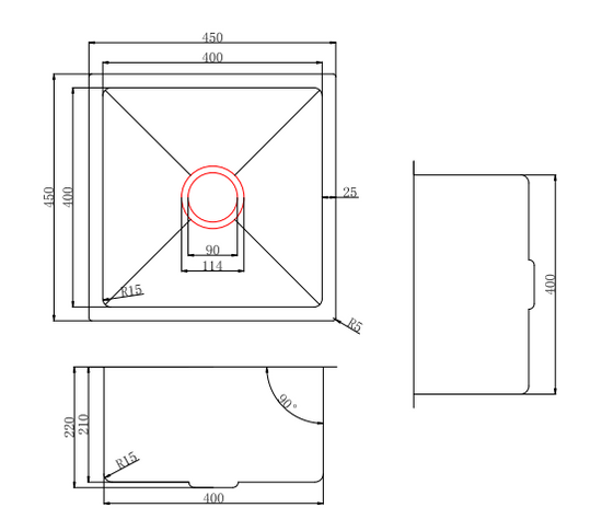 304 Stainless Steel Sink(SLSS-450R)450*450*220mm