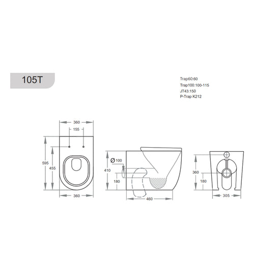 MATTE BLABK Rimless Floor Pan(KDK102RMB/KDK102RMW)with slim seat (SC1064-MB/SC1064-MW)