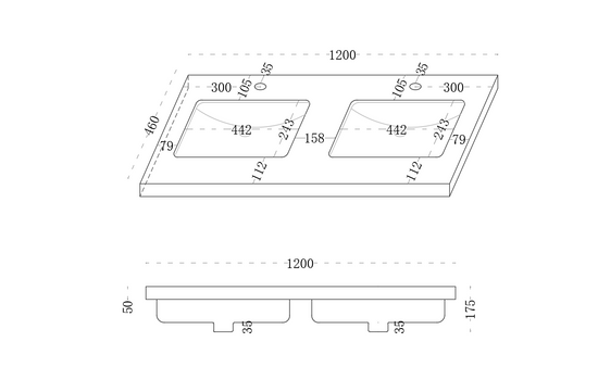 VITO DeLume SINTERED top seamless jointed with double ceramic basin 1200/1500mm NDU124D/154D-TH/NTH