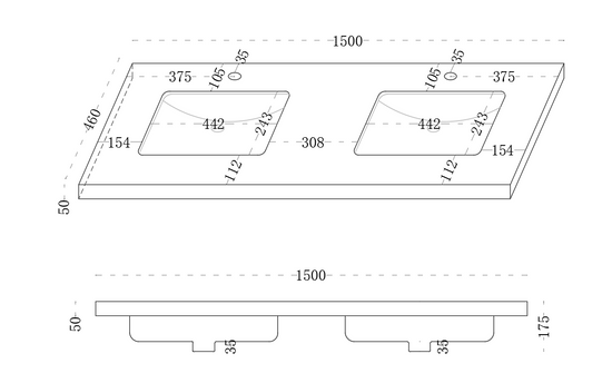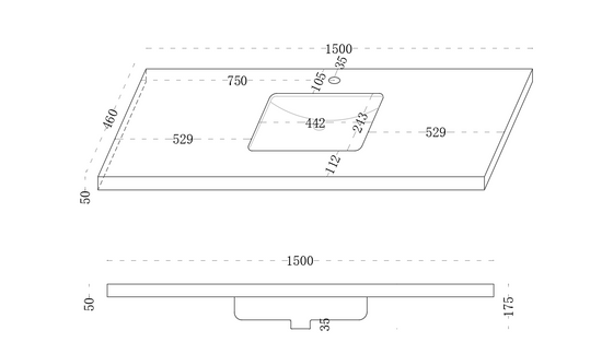 VITO Silica-Free Artificial Quartz Top- Curve 1500*505*20mm