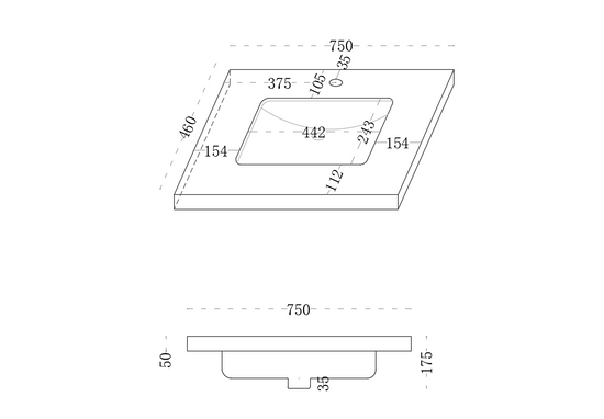 VITO Silica-Free Artificial Quartz Top- Curve 750*505*20mm
