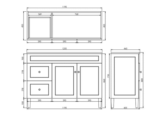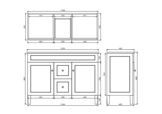 For the 1200mm size (with 2 drawers), no bowl / single bowl options are available;