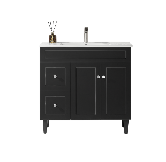 VITO Hamilton Floor PVC Cabinet Soft Closing Door, solid wood legs Right Hand & Left Hand Drawers 740*455*860mm