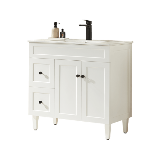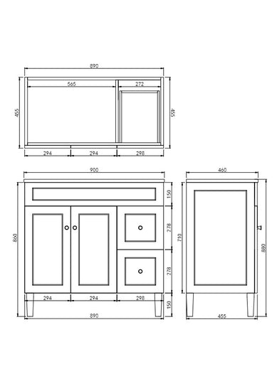 VITO Hamilton Floor PVC Cabinet Soft Closing Door, solid wood legs Right Hand & Left Hand Drawers 890x455x860 mm