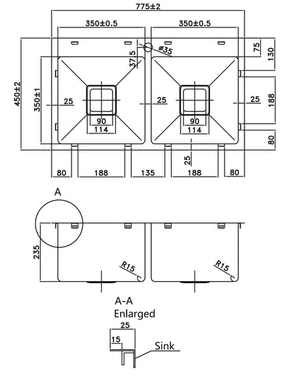 304 Double Stainless Steel Sink(PKS-775TPS)775×450×235mm