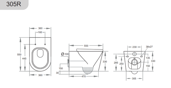 -Pan: Gloss White Rimless Wall Hung Pan KDK305R with SLIM seat (SC805)