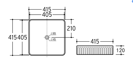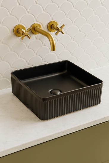 VITO Athena Fluted Square Premium Ceramic Above-Counter Basin 415*415*120mm ATH415SQ