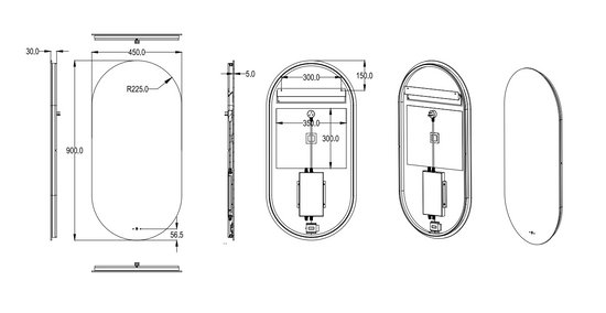 Ovian Backlit LED Mirror Smart Touch Free Controls 450*900mm OV4590BM