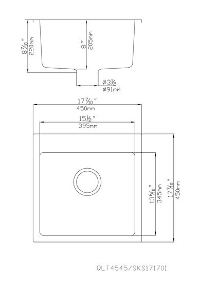 Quartz Top mount laundry tub 450*450*220mm (QZ4545)