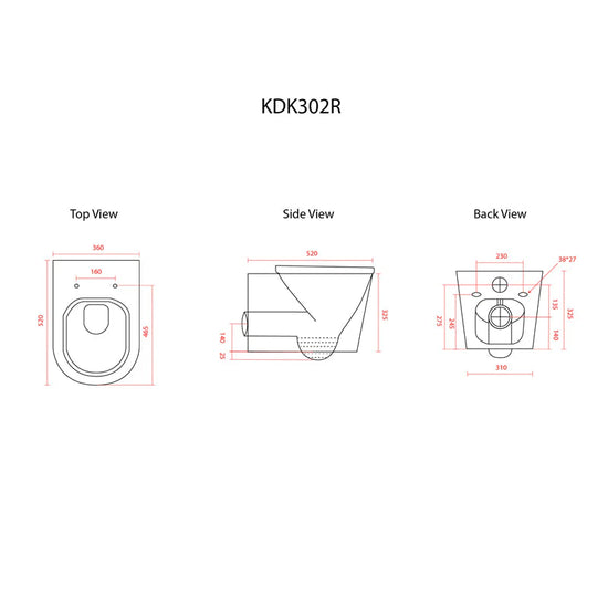 -Pan: Gloss White Rimless Wall Hung Pan KDK302R with slim seat (SC1064MB-5.5)